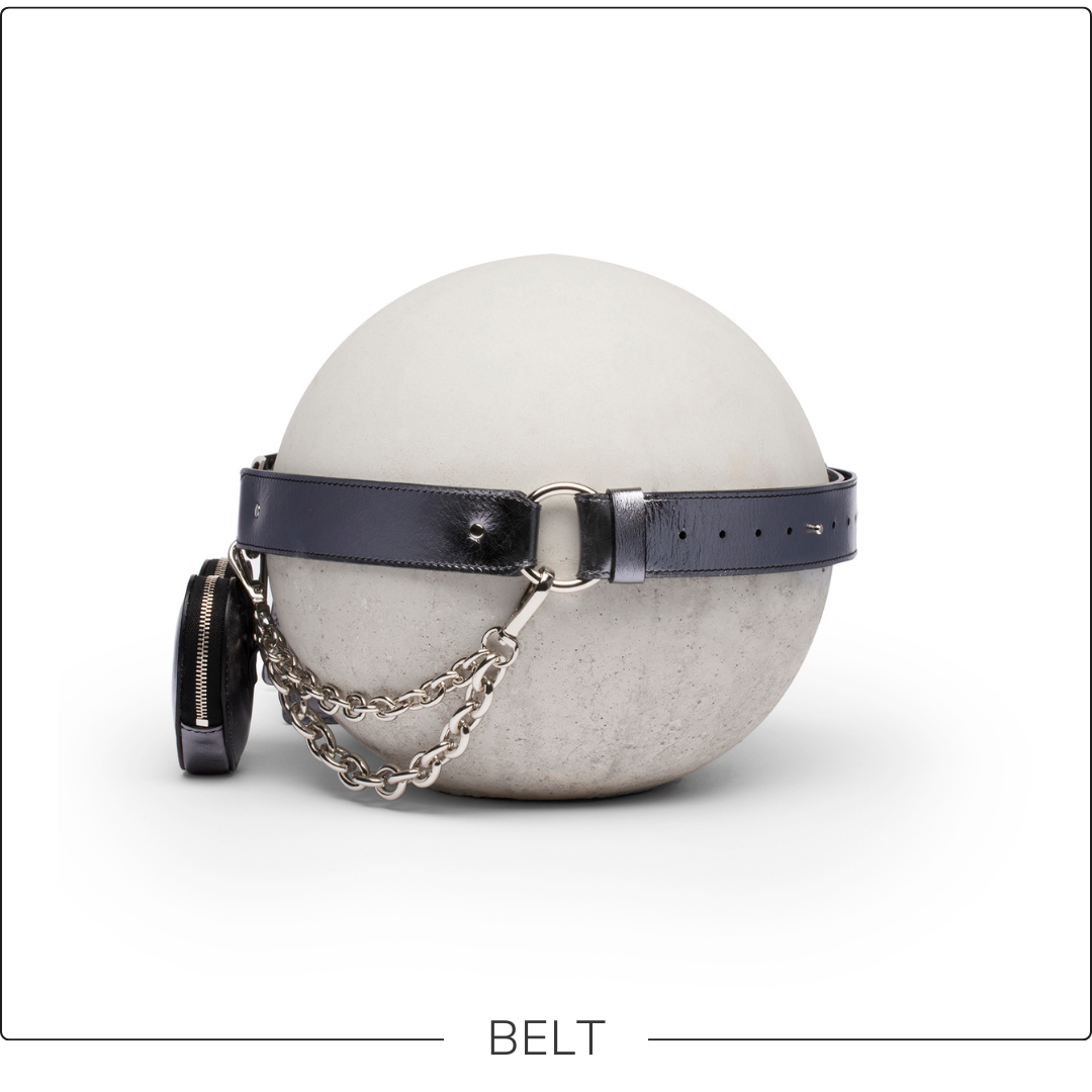 Domino può essere utilizzato da soli o con il proprio cane per un dog walk a mani libere agganciando il guinzaglio all’anello metallico. E’ composto da una cintura con catenelle amovibili e passanti che permettono di attaccare e staccare rapidamente gli accessori, una pouch a forma di cuore con zip metallica e moschettone, e una borsa con manico a catena.