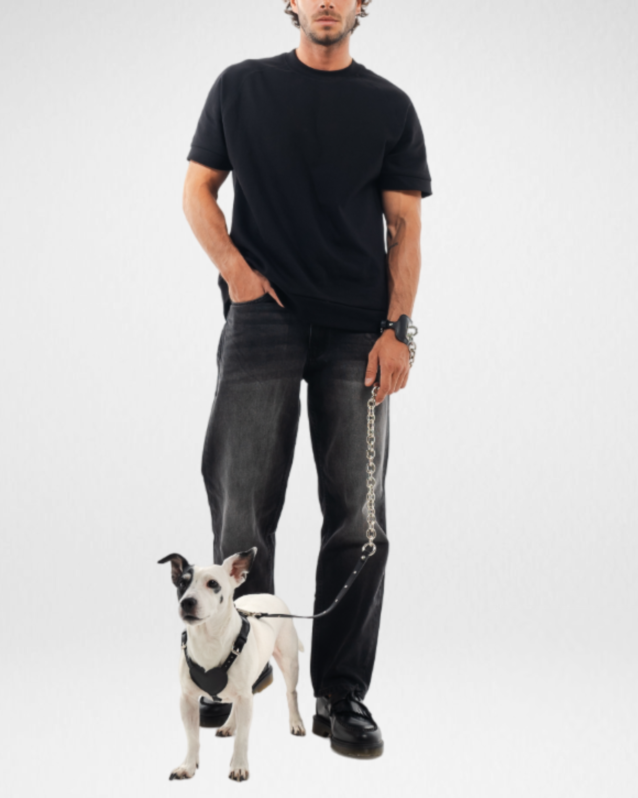 Progettato per passeggiate all’insegna dello stile, questo set include una pettorina imbottita a forma di cuore, un guinzaglio con catena e borchie, e un polsino con anello in metallo che sostituisce il manico in caso di passeggiata a mani libere. Ludo combina design e versatilità, rendendo ogni uscita un momento di stile e connessione.