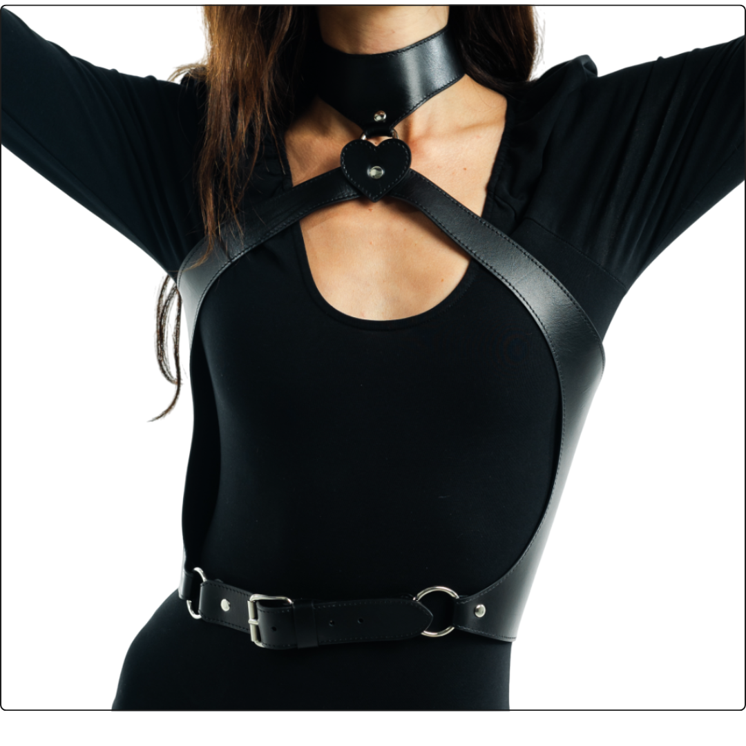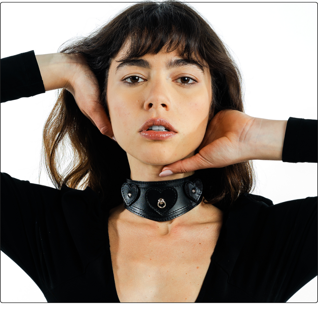 Al cuore della collezione vivono due creazioni essenziali: il Lover Collar, raffinato e deciso, e il Lover Harness, architettura del desiderio da indossare con disinvoltura.